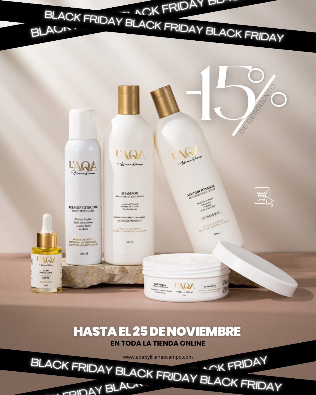 AQA es una línea capilar enfocada en la reparación, hidratación y crecimiento del cabello, formulada con ingredientes de alta calidad como biotina, colágeno, queratina y extractos naturales. No usamos sulfatos agresivos ni parabenos, asegurando un cuidado profundo sin dañar la fibra capilar.